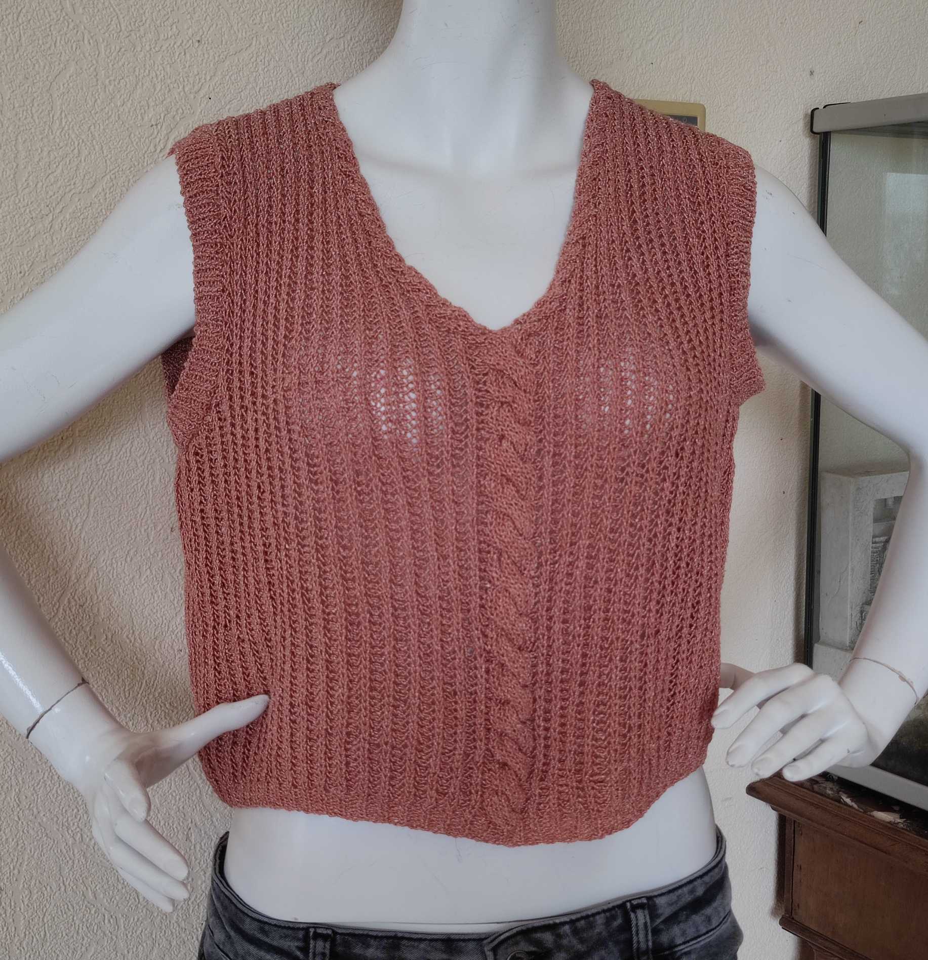 débardeurs : le premier réalisé en transformant un modèle prévu pour un pullover , le deuxième sur tuto