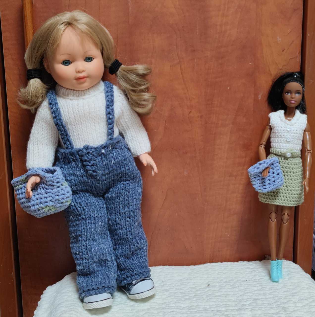 et je m'amuse aussi à habiller les poupées avec les restes de laine ou de coton